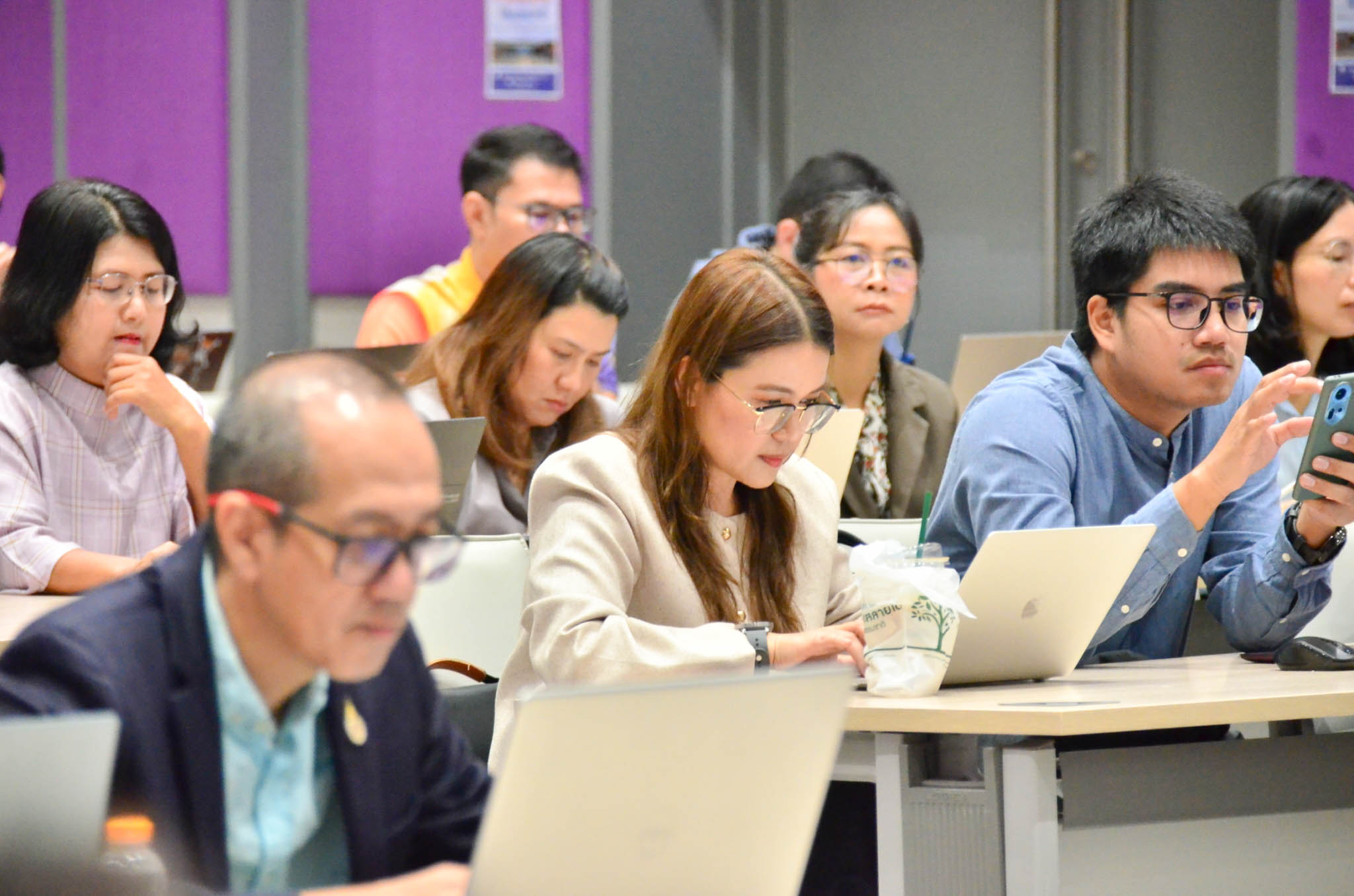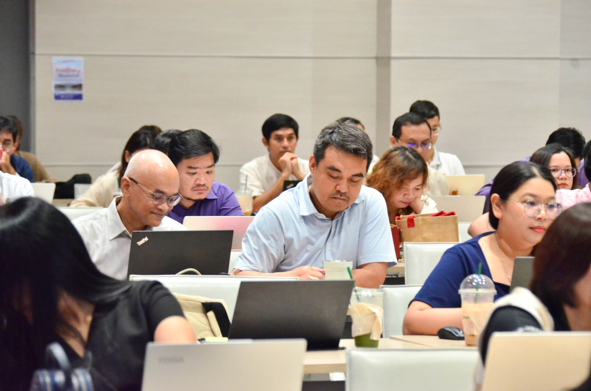 บรรยากาศการอบรมเป็นไปอย่างคึกคัก มีผู้สนใจเข้าร่วมอบรมถึง 104 ราย ซึ่งมากกว่าจำนวนที่คาดการณ์ไว้ สะท้อนถึงความตื่นตัวของบุคลากรต่อการพัฒนาศักยภาพด้านกฎ ระเบียบ และงานนิติการขององค์กร