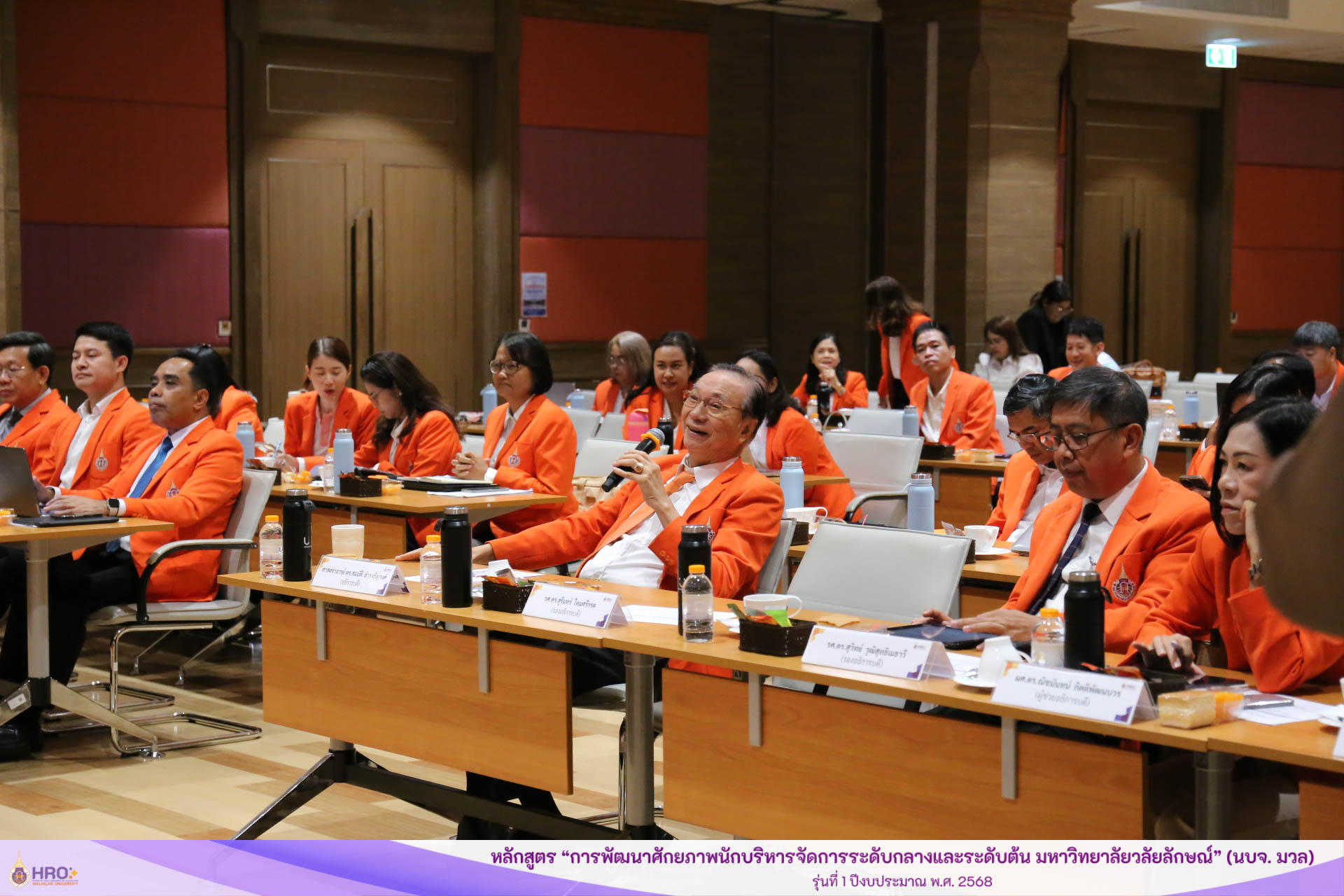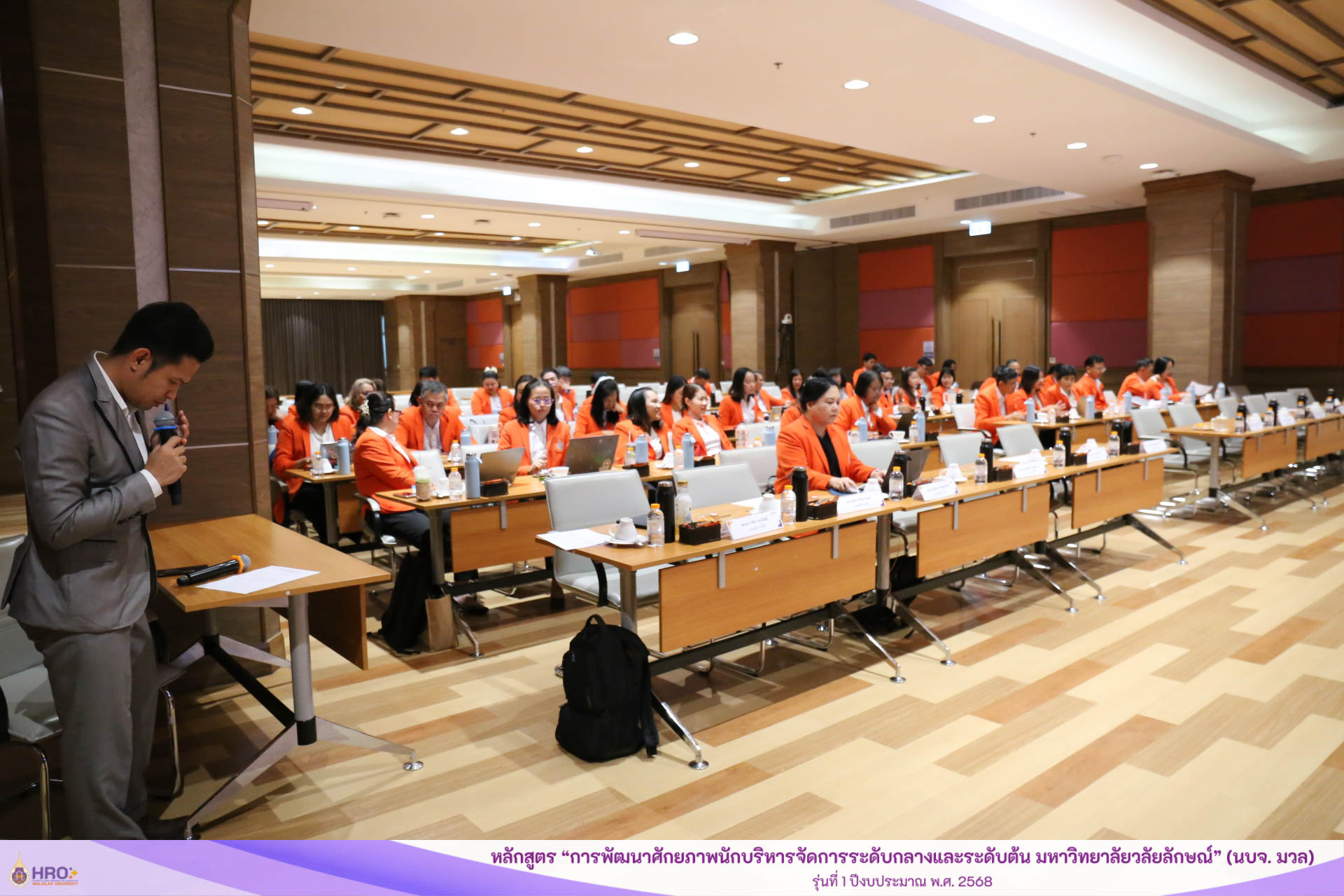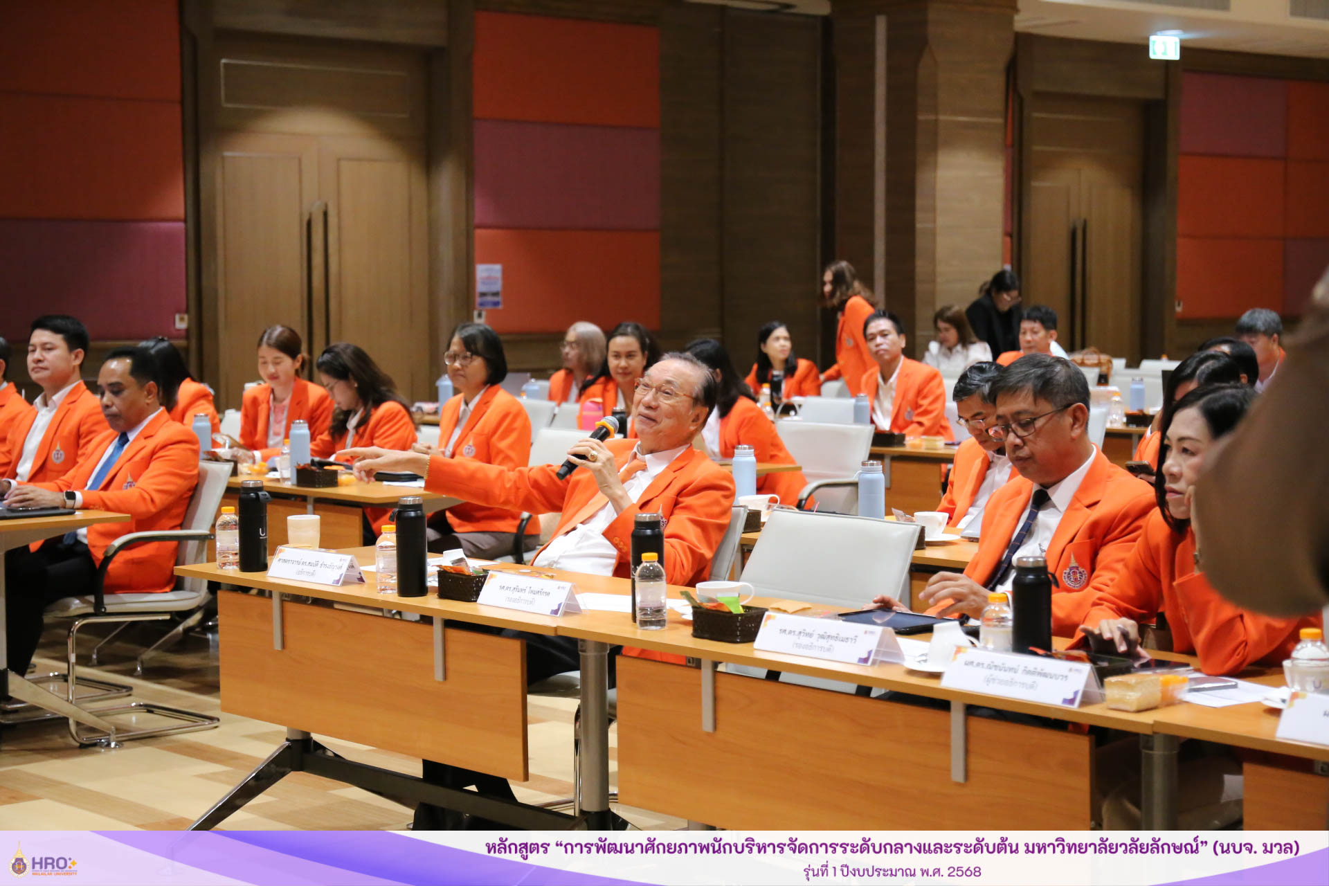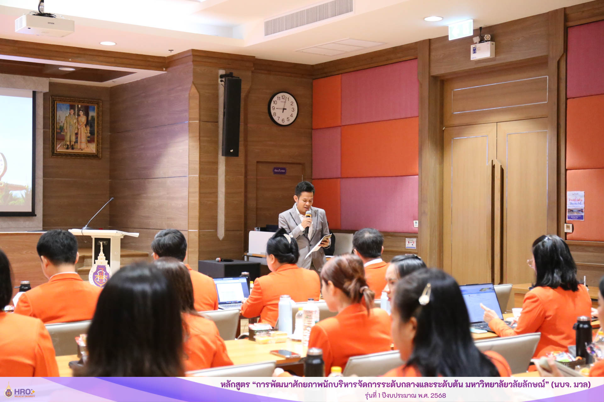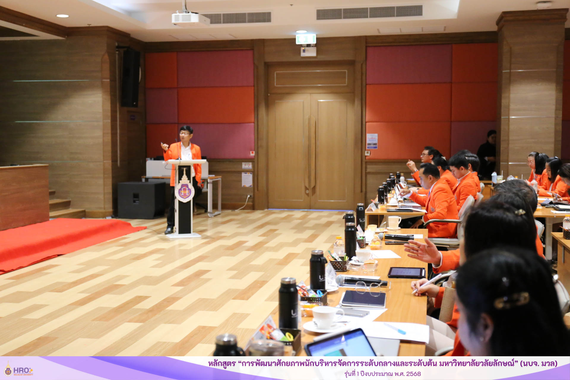 เมื่อวันที่ 17 กรกฎาคม 2568 ส่วนทรัพยากรมนุษย์และองค์กร มหาวิทยาลัยวลัยลักษณ์ ได้จัดกิจกรรมอบรมภายใต้หลักสูตร “การพัฒนาศักยภาพนักบริหารจัดการระดับกลางและระดับต้น มหาวิทยาลัยวลัยลักษณ์” (นบจ. มวล) Module 5 หัวข้อ “การจัดทำรายงานการศึกษาและการนำเสนอรายงานการศึกษา” ณ ห้องประชุมหัวตะพาน ศูนย์การแพทย์มหาวิทยาลัยวลัยลักษณ์ โดยมี ศาสตราจารย์ ดร. สมบัติ ธำรงธัญวงศ์ อธิการบดีมหาวิทยาลัยวลัยลักษณ์ พร้อมด้วยคณะผู้บริหารระดับสูง ได้แก่ รองอธิการบดี และผู้ช่วยอธิการบดี รวม 12 ท่าน เข้าร่วมรับฟังการนำเสนอ และให้ข้อเสนอแนะเชิงสร้างสรรค์แก่ผู้เข้าอบรมทุกกลุ่ม
