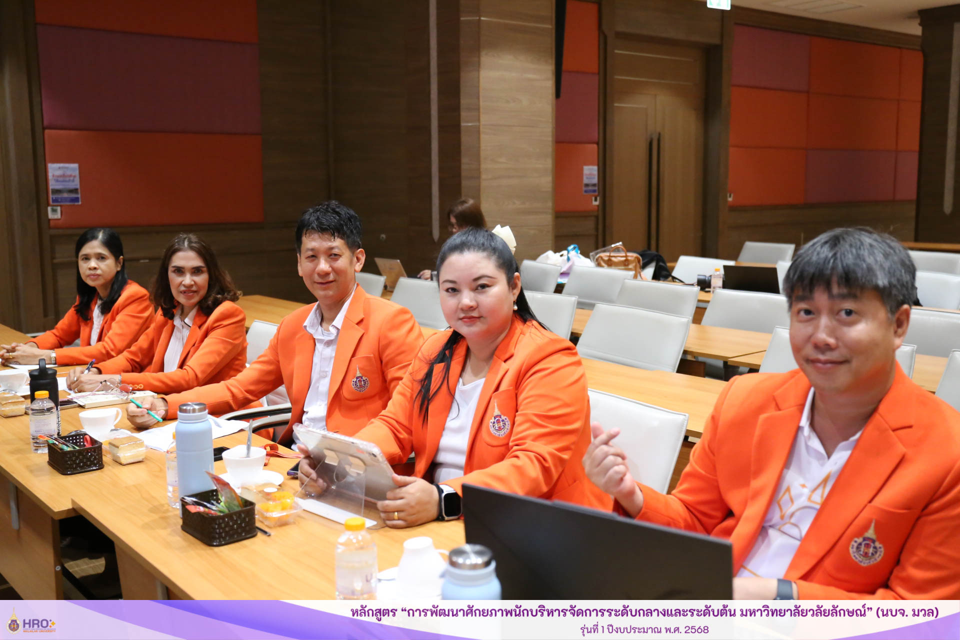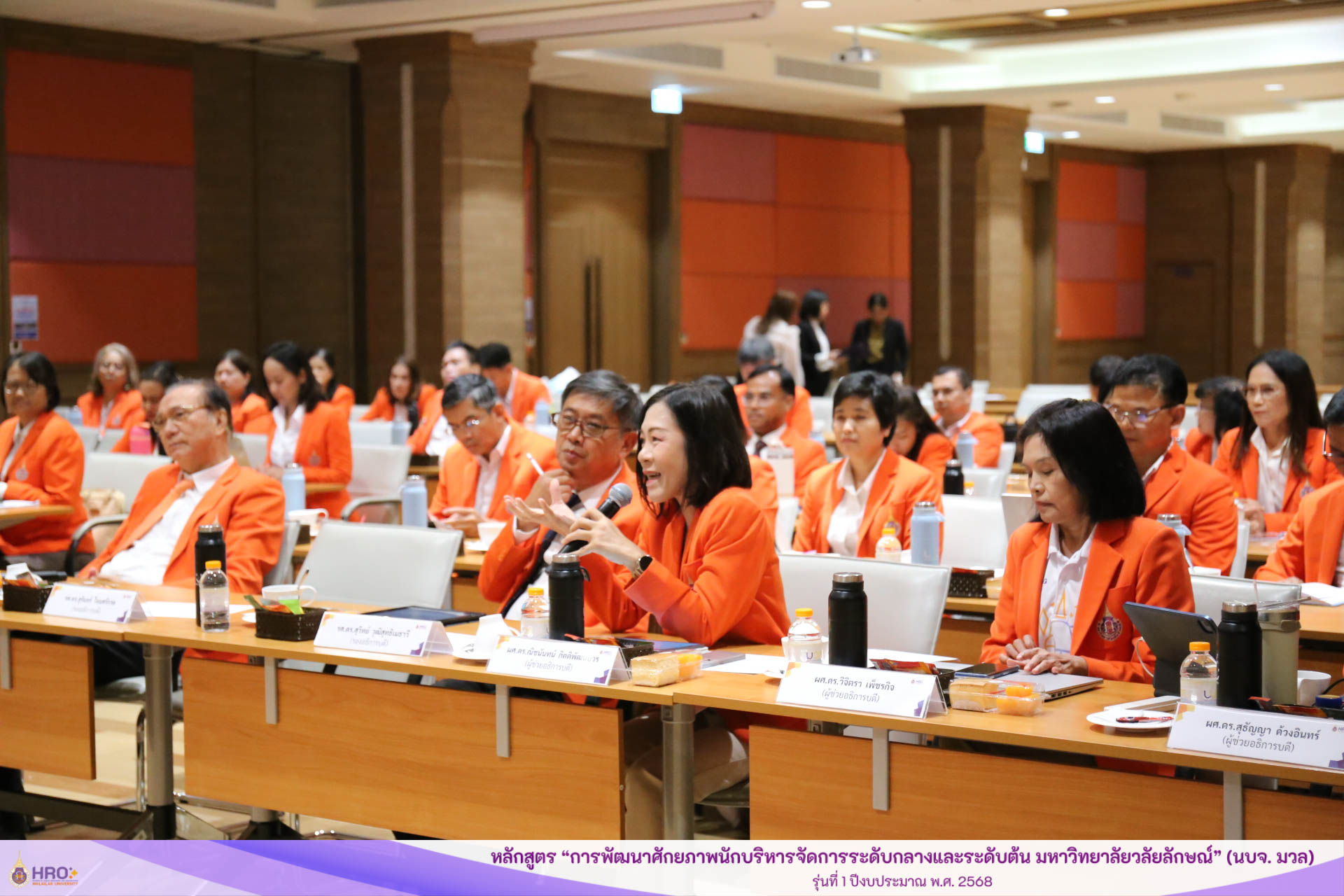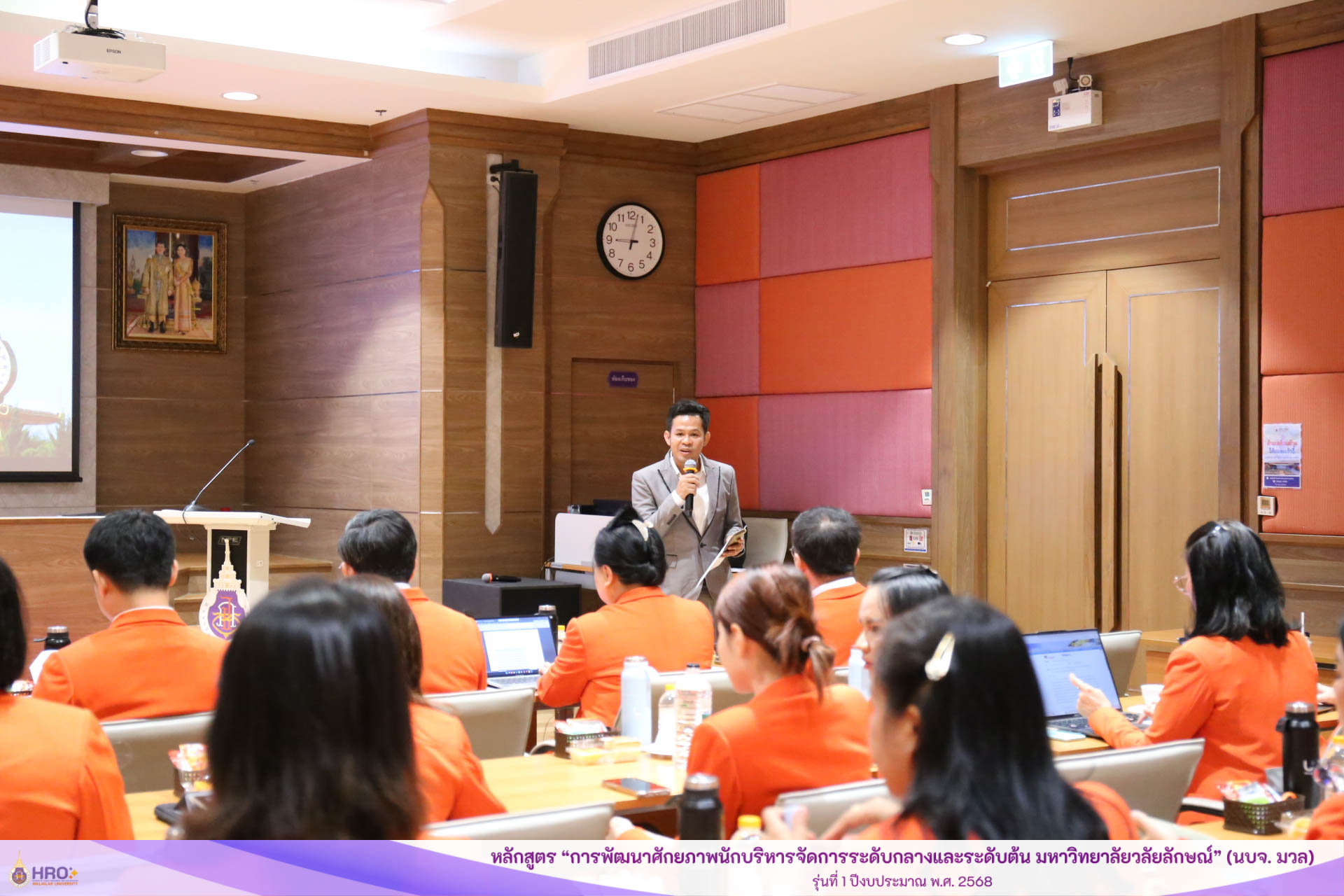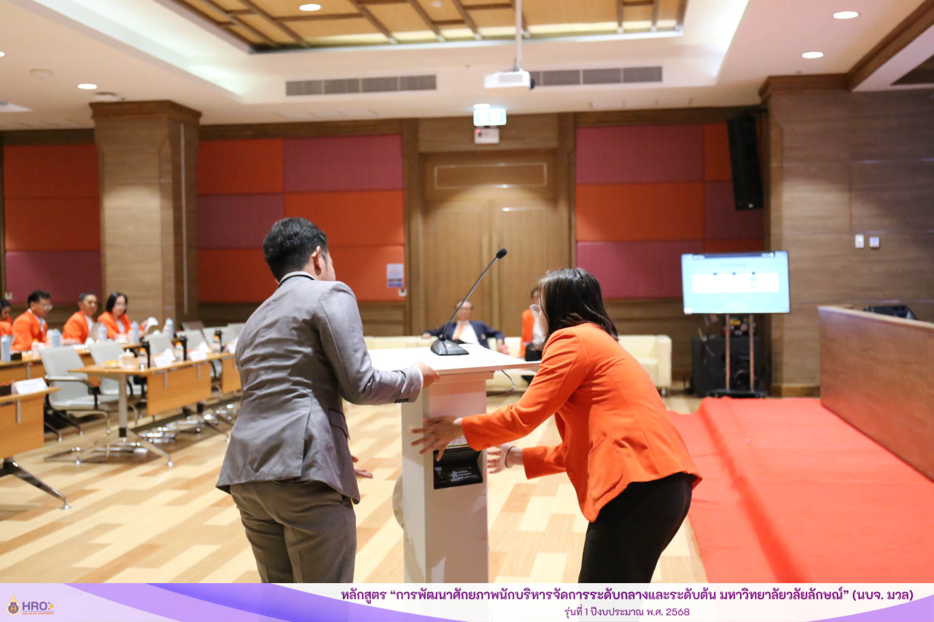 เมื่อวันที่ 17 กรกฎาคม 2568 ส่วนทรัพยากรมนุษย์และองค์กร มหาวิทยาลัยวลัยลักษณ์ ได้จัดกิจกรรมอบรมภายใต้หลักสูตร “การพัฒนาศักยภาพนักบริหารจัดการระดับกลางและระดับต้น มหาวิทยาลัยวลัยลักษณ์” (นบจ. มวล) Module 5 หัวข้อ “การจัดทำรายงานการศึกษาและการนำเสนอรายงานการศึกษา” ณ ห้องประชุมหัวตะพาน ศูนย์การแพทย์มหาวิทยาลัยวลัยลักษณ์ โดยมี ศาสตราจารย์ ดร. สมบัติ ธำรงธัญวงศ์ อธิการบดีมหาวิทยาลัยวลัยลักษณ์ พร้อมด้วยคณะผู้บริหารระดับสูง ได้แก่ รองอธิการบดี และผู้ช่วยอธิการบดี รวม 12 ท่าน เข้าร่วมรับฟังการนำเสนอ และให้ข้อเสนอแนะเชิงสร้างสรรค์แก่ผู้เข้าอบรมทุกกลุ่ม