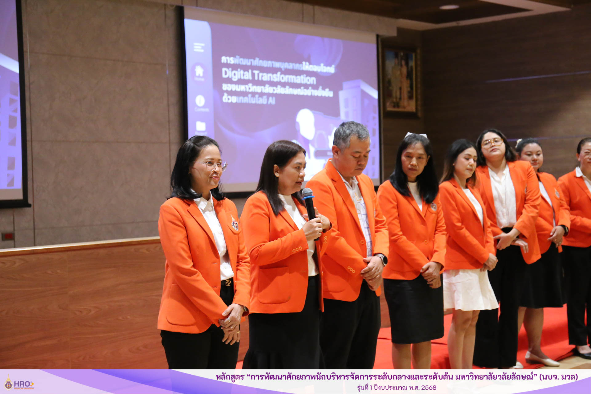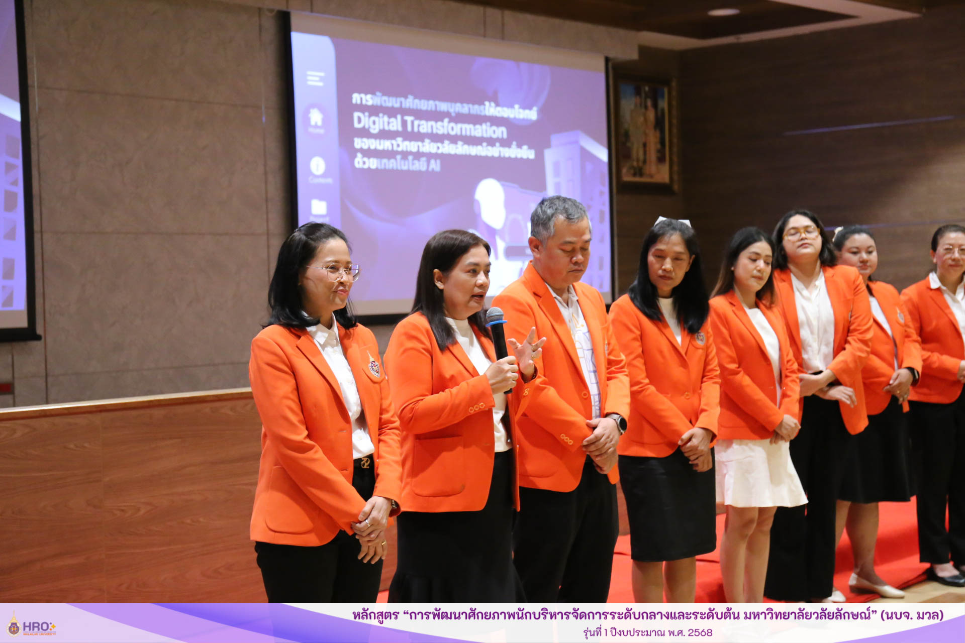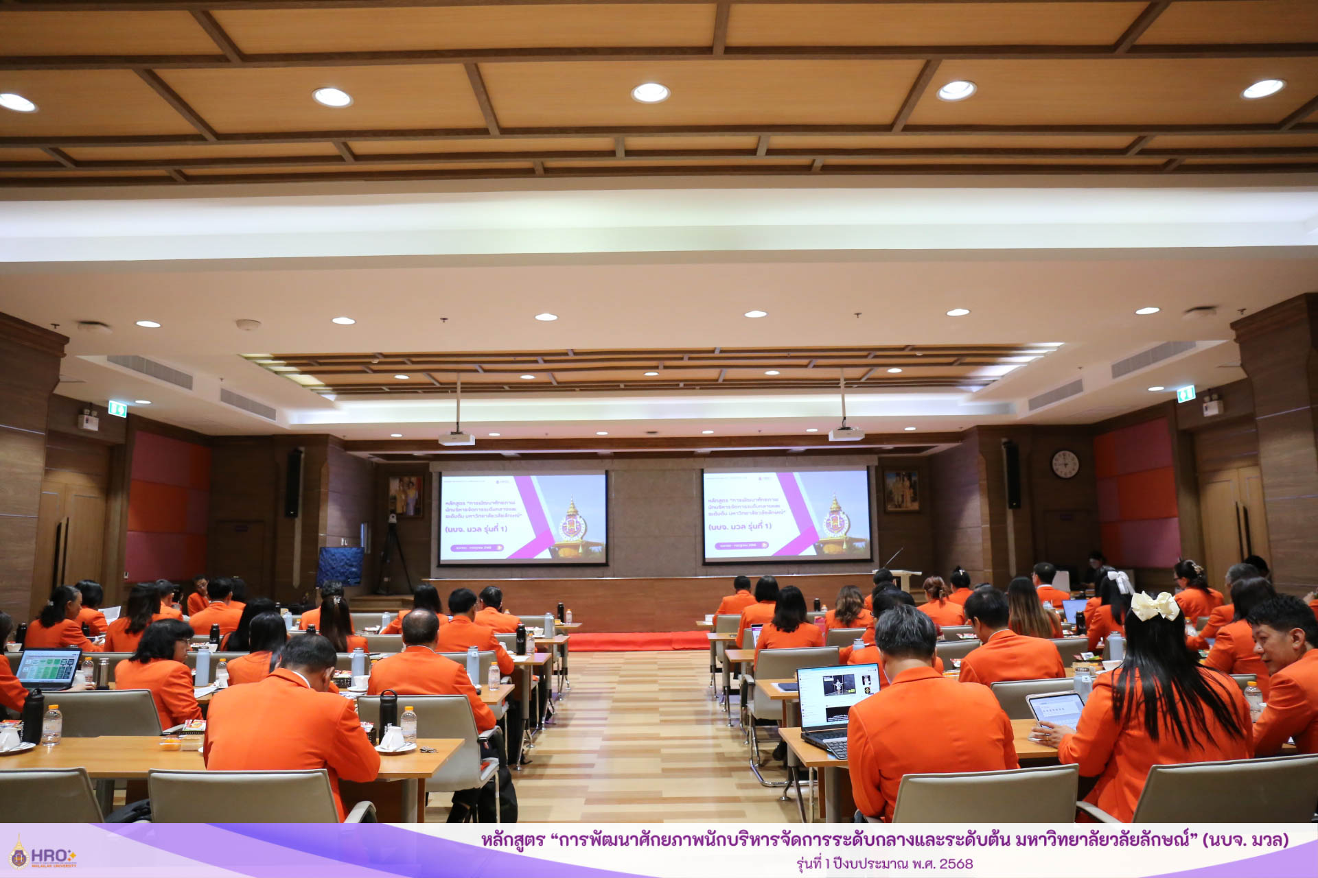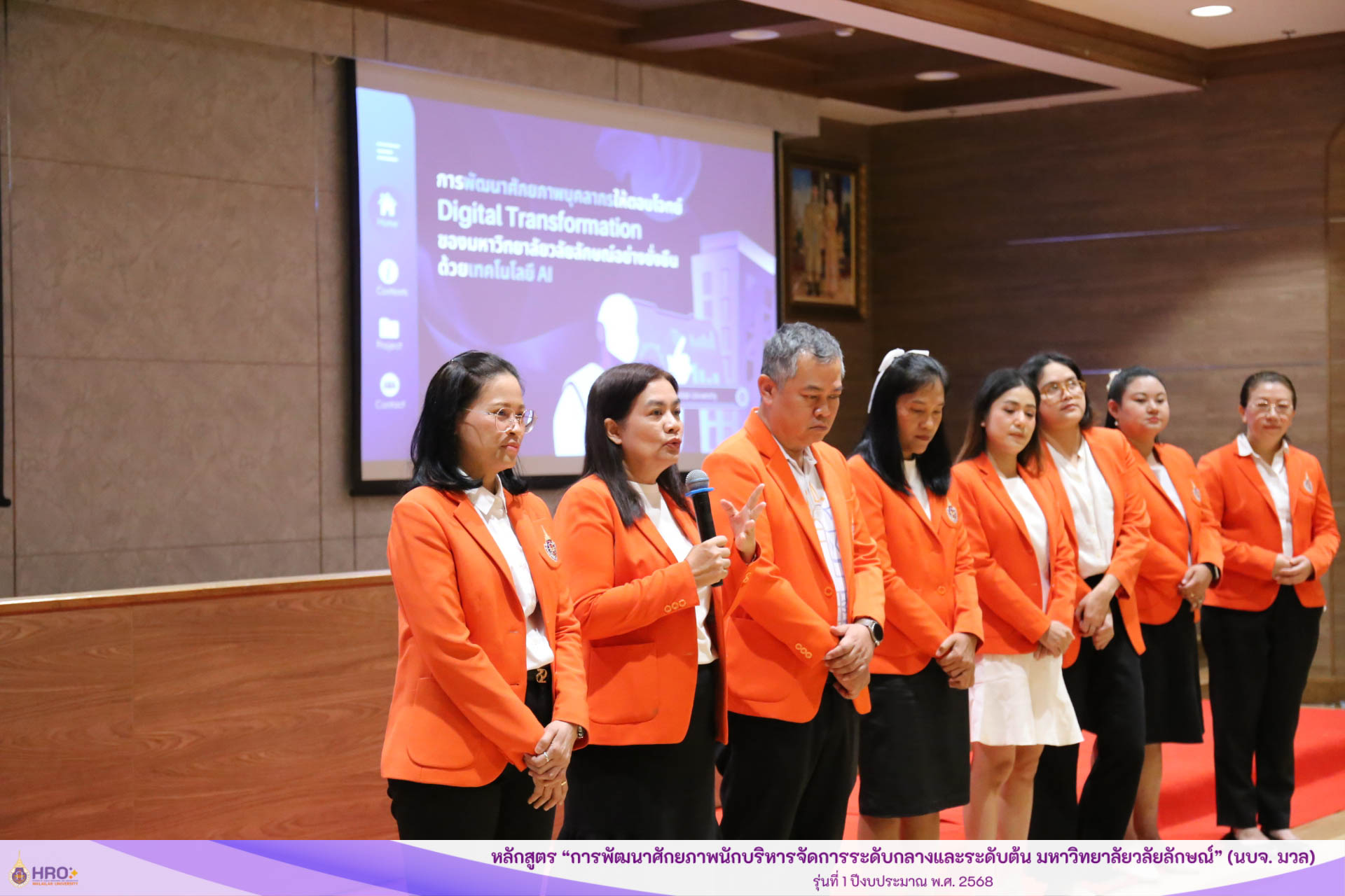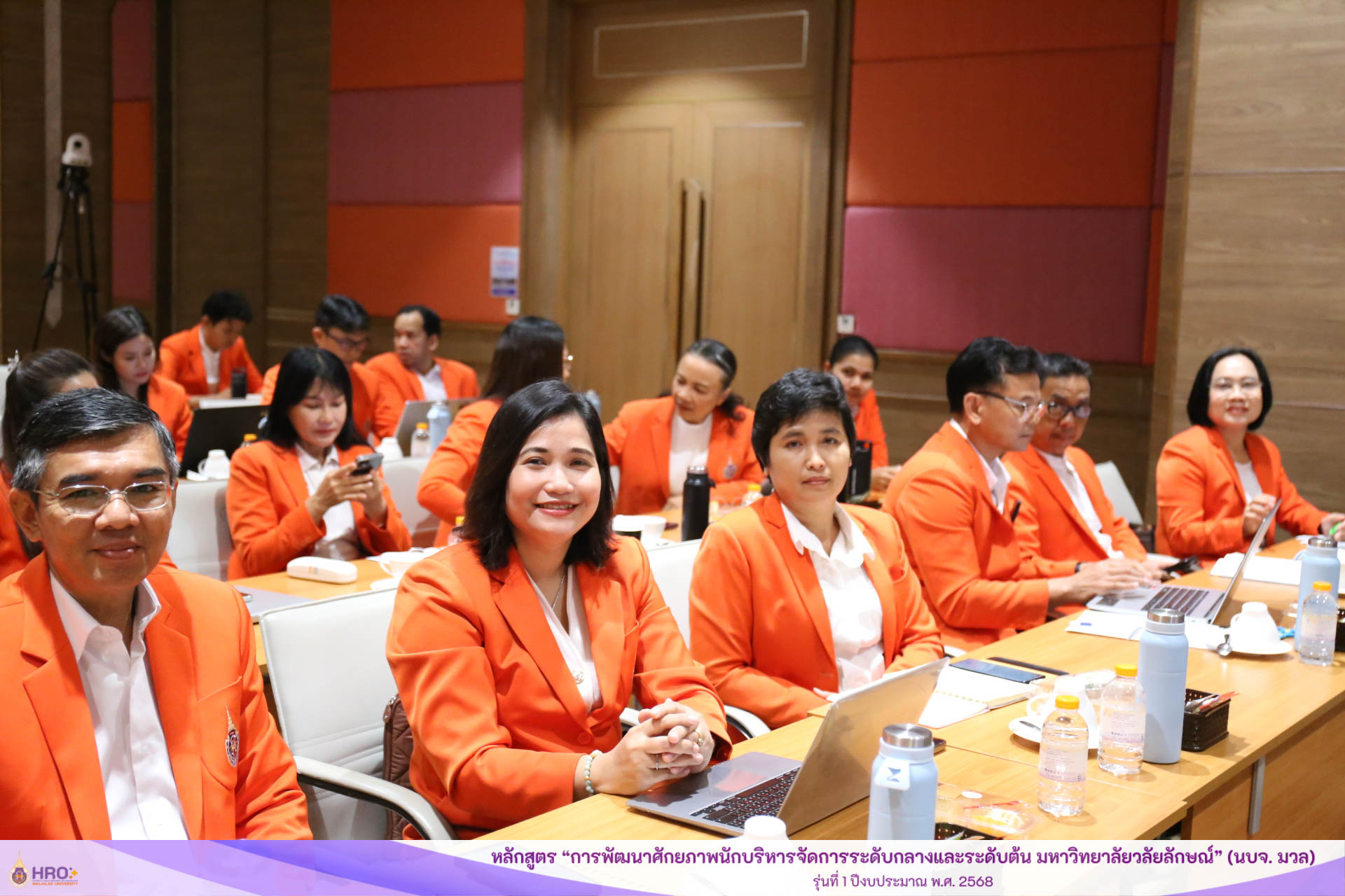 เมื่อวันที่ 17 กรกฎาคม 2568 ส่วนทรัพยากรมนุษย์และองค์กร มหาวิทยาลัยวลัยลักษณ์ ได้จัดกิจกรรมอบรมภายใต้หลักสูตร “การพัฒนาศักยภาพนักบริหารจัดการระดับกลางและระดับต้น มหาวิทยาลัยวลัยลักษณ์” (นบจ. มวล) Module 5 หัวข้อ “การจัดทำรายงานการศึกษาและการนำเสนอรายงานการศึกษา” ณ ห้องประชุมหัวตะพาน ศูนย์การแพทย์มหาวิทยาลัยวลัยลักษณ์ โดยมี ศาสตราจารย์ ดร. สมบัติ ธำรงธัญวงศ์ อธิการบดีมหาวิทยาลัยวลัยลักษณ์ พร้อมด้วยคณะผู้บริหารระดับสูง ได้แก่ รองอธิการบดี และผู้ช่วยอธิการบดี รวม 12 ท่าน เข้าร่วมรับฟังการนำเสนอ และให้ข้อเสนอแนะเชิงสร้างสรรค์แก่ผู้เข้าอบรมทุกกลุ่ม