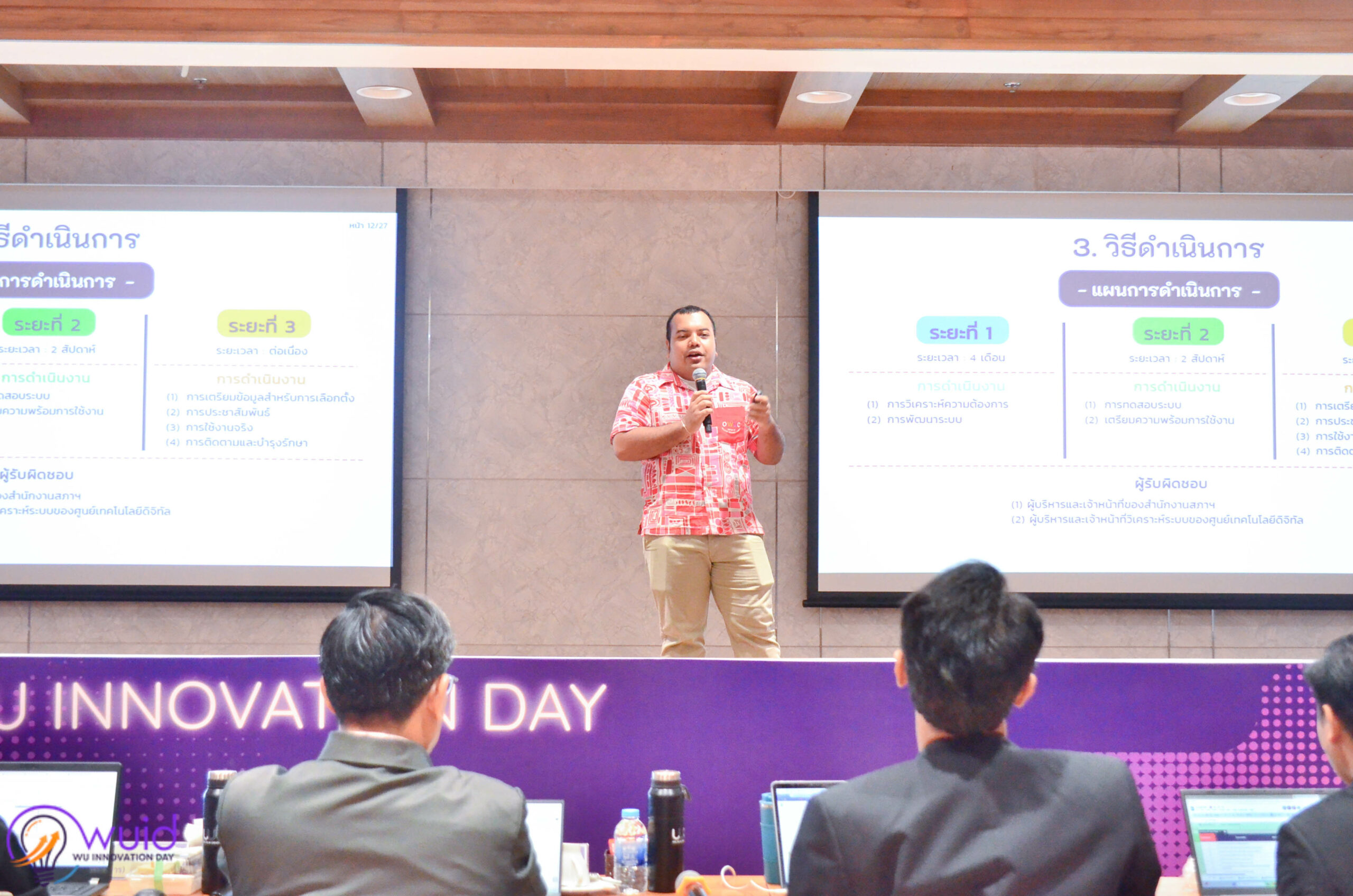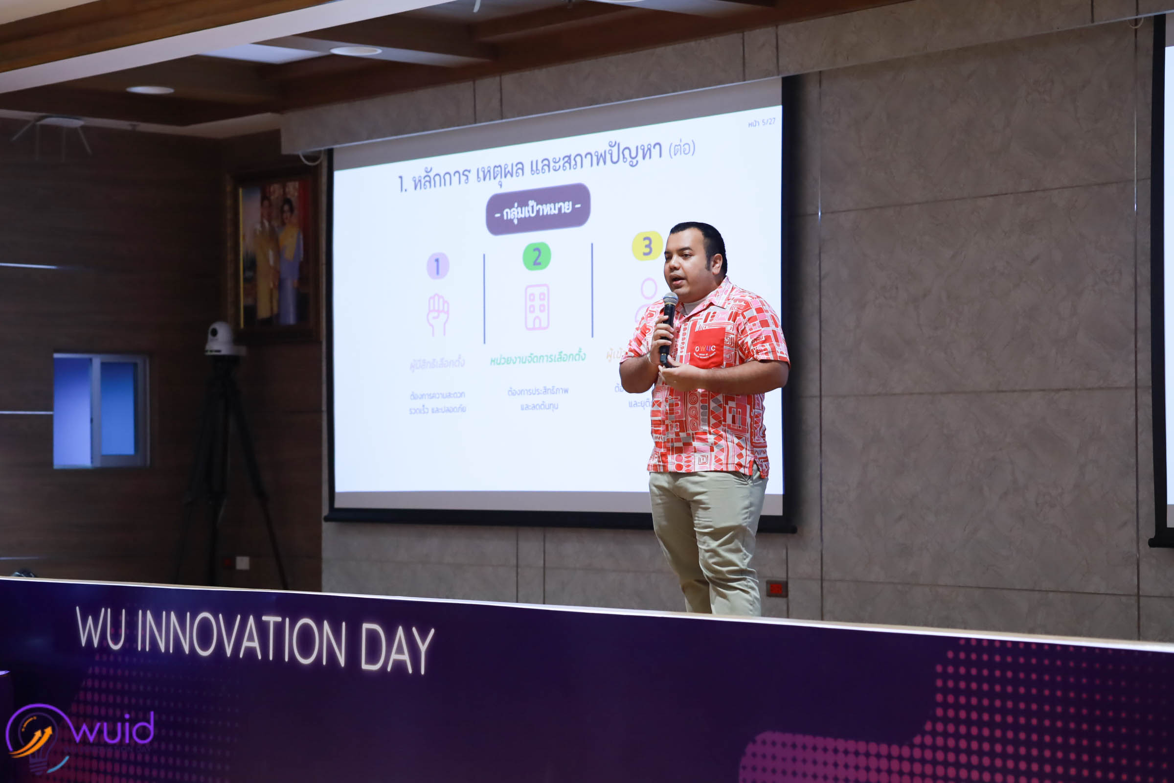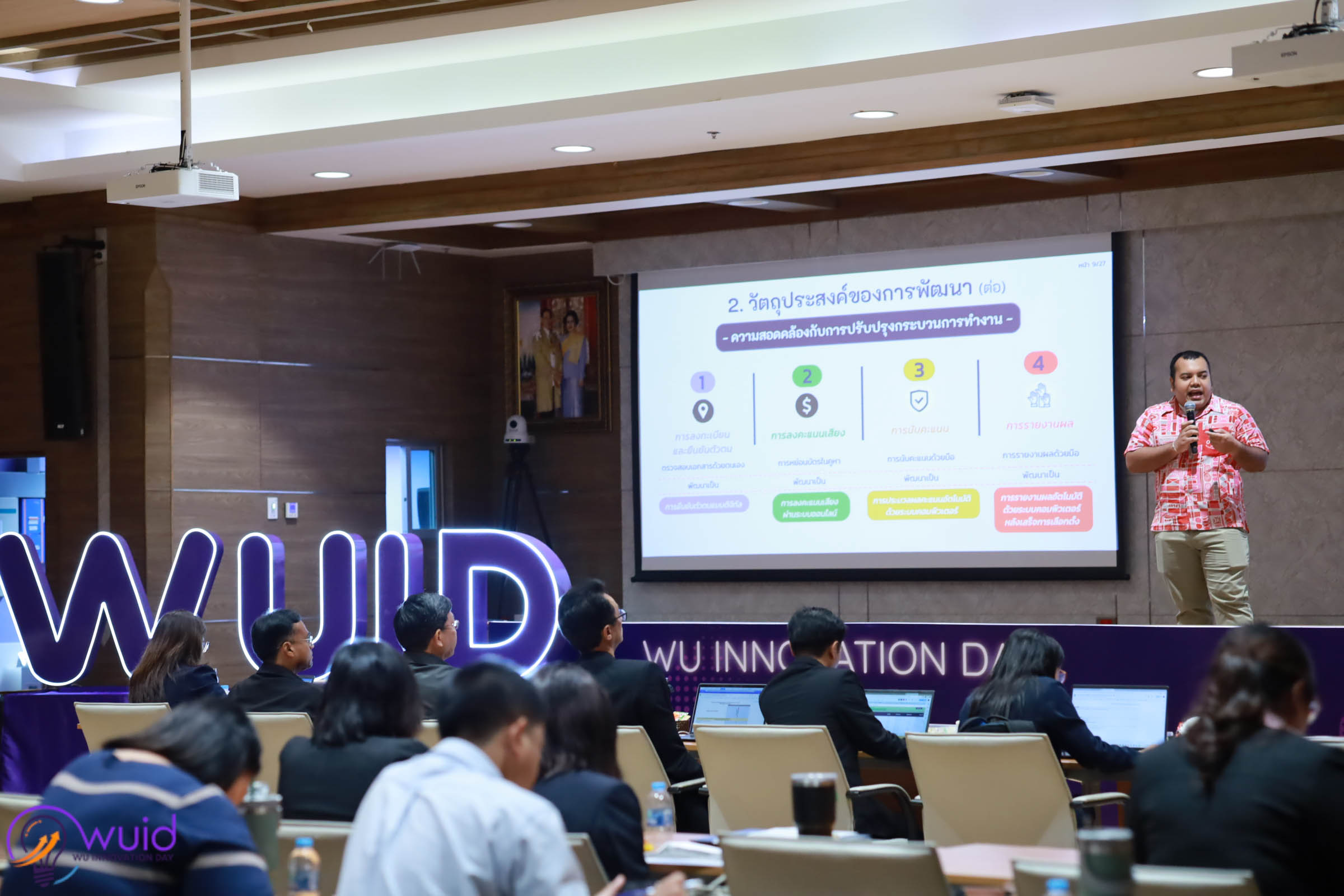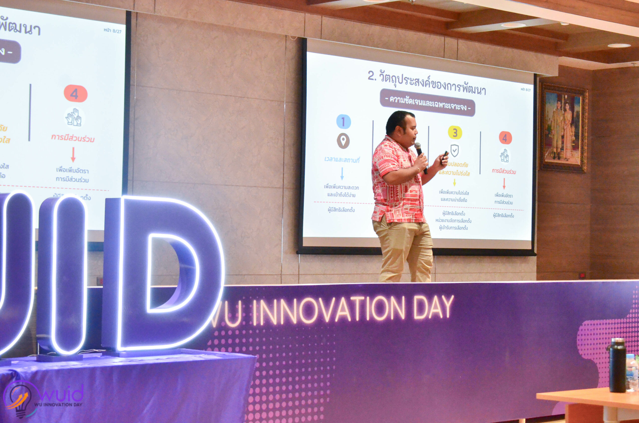 การจัดงาน WU Innovation Day จัดขึ้นต่อเนื่องเป็นปีที่ 3 มีวัตถุประสงค์เพื่อเป็นเวทีแสดงผลงานด้านนวัตกรรมและการพัฒนากระบวนการทำงานของหน่วยงานต่าง ๆ ภายในมหาวิทยาลัย ไม่ว่าจะเป็นสำนักวิชา วิทยาลัย บัณฑิตวิทยาลัย ศูนย์ สถาบัน ส่วน และสำนักงาน โดยผลงานที่นำเสนอเป็นผลสัมฤทธิ์จากการสร้างสรรค์และการพัฒนางานที่สามารถนำไปใช้ได้จริง สอดคล้องกับแนวคิด LEAN: ลดขั้นตอน ลดเวลา และประหยัดงบประมาณ ตามนโยบายของมหาวิทยาลัย