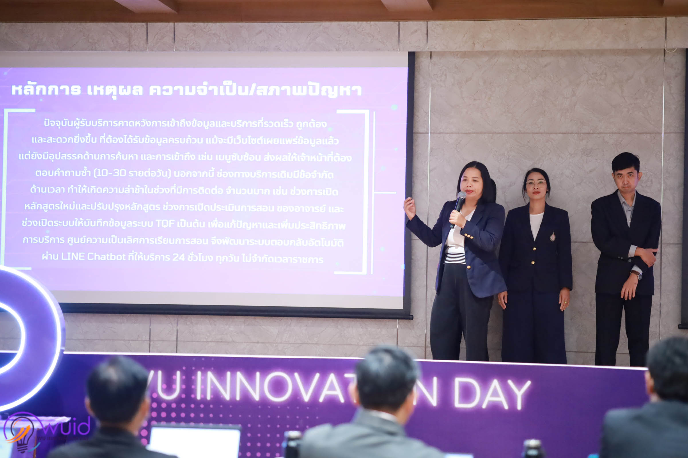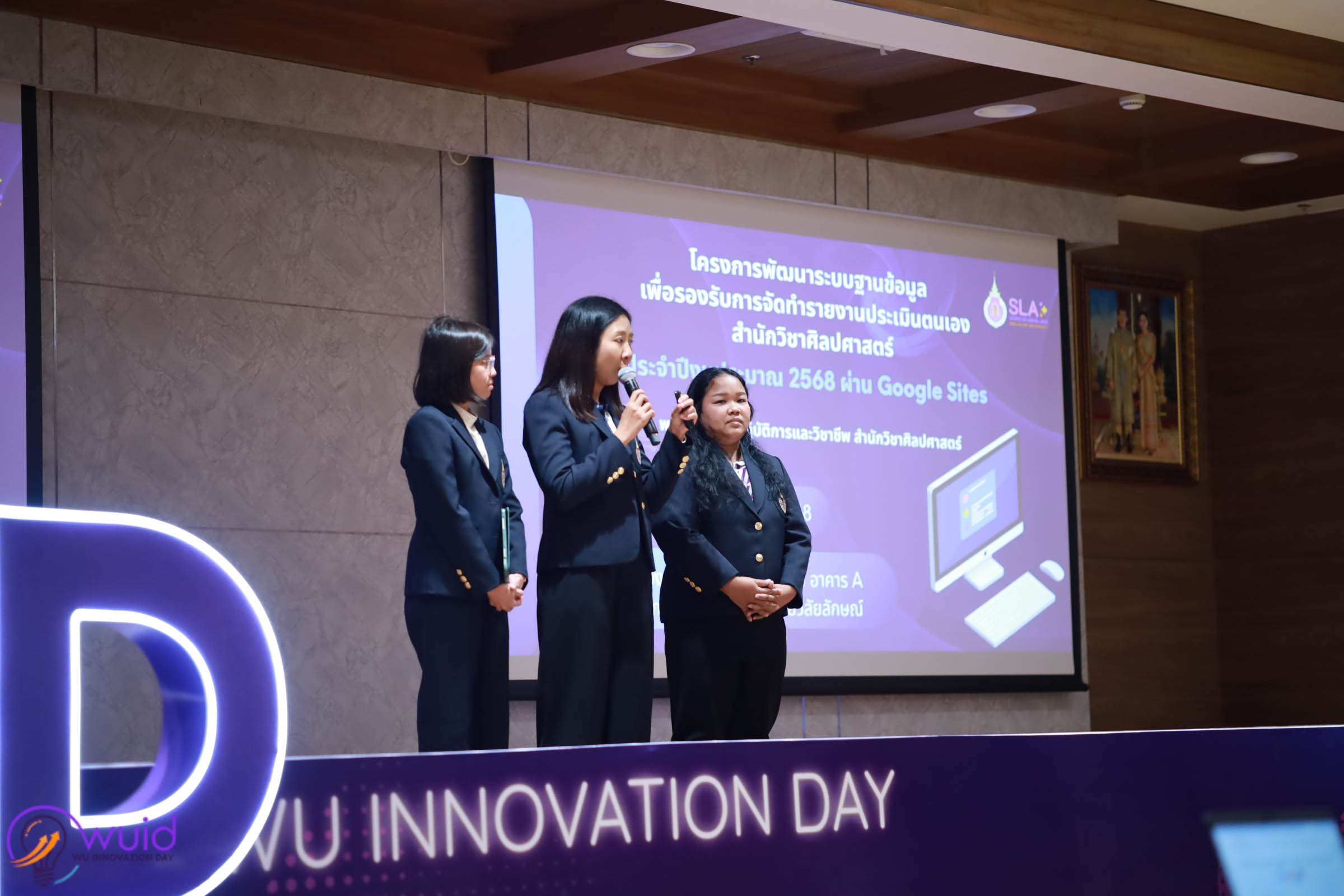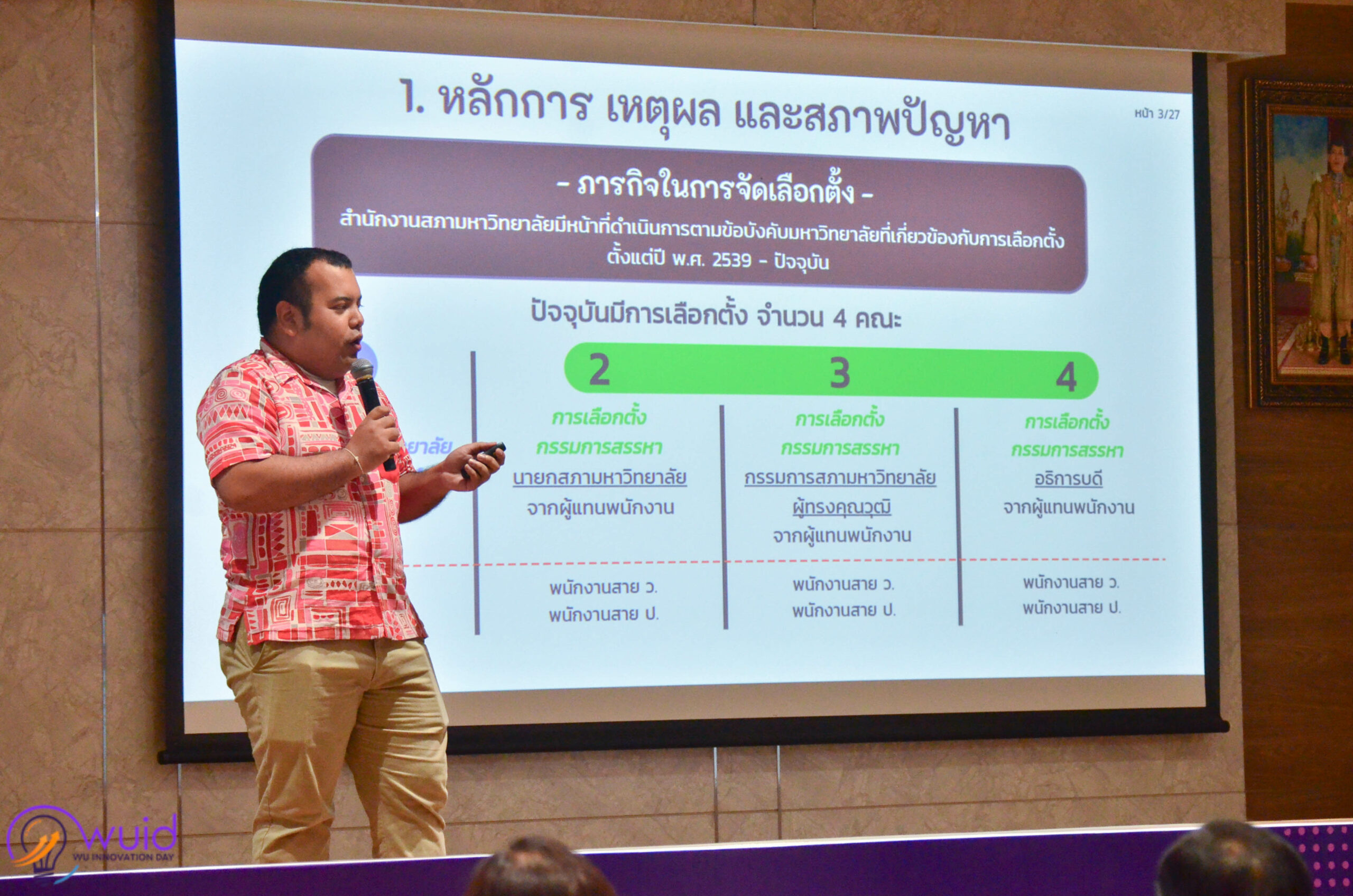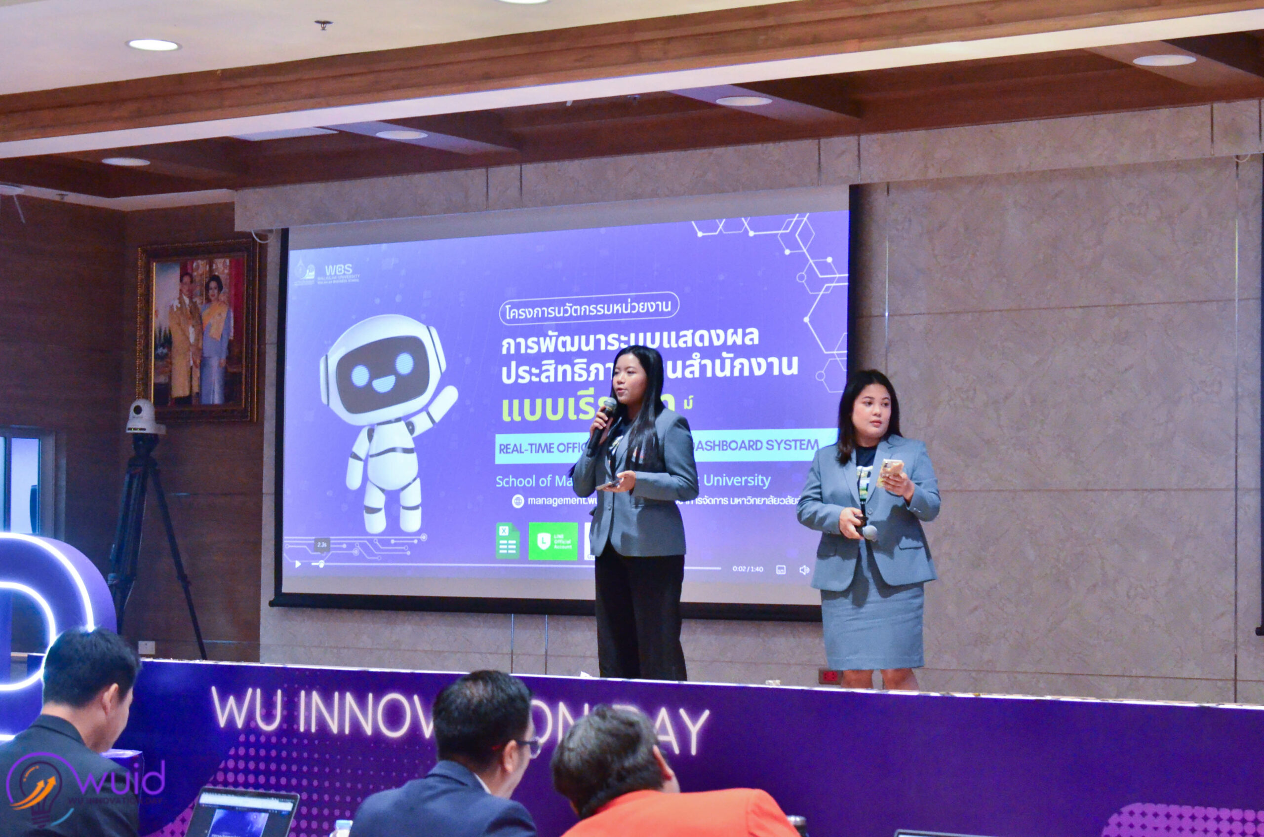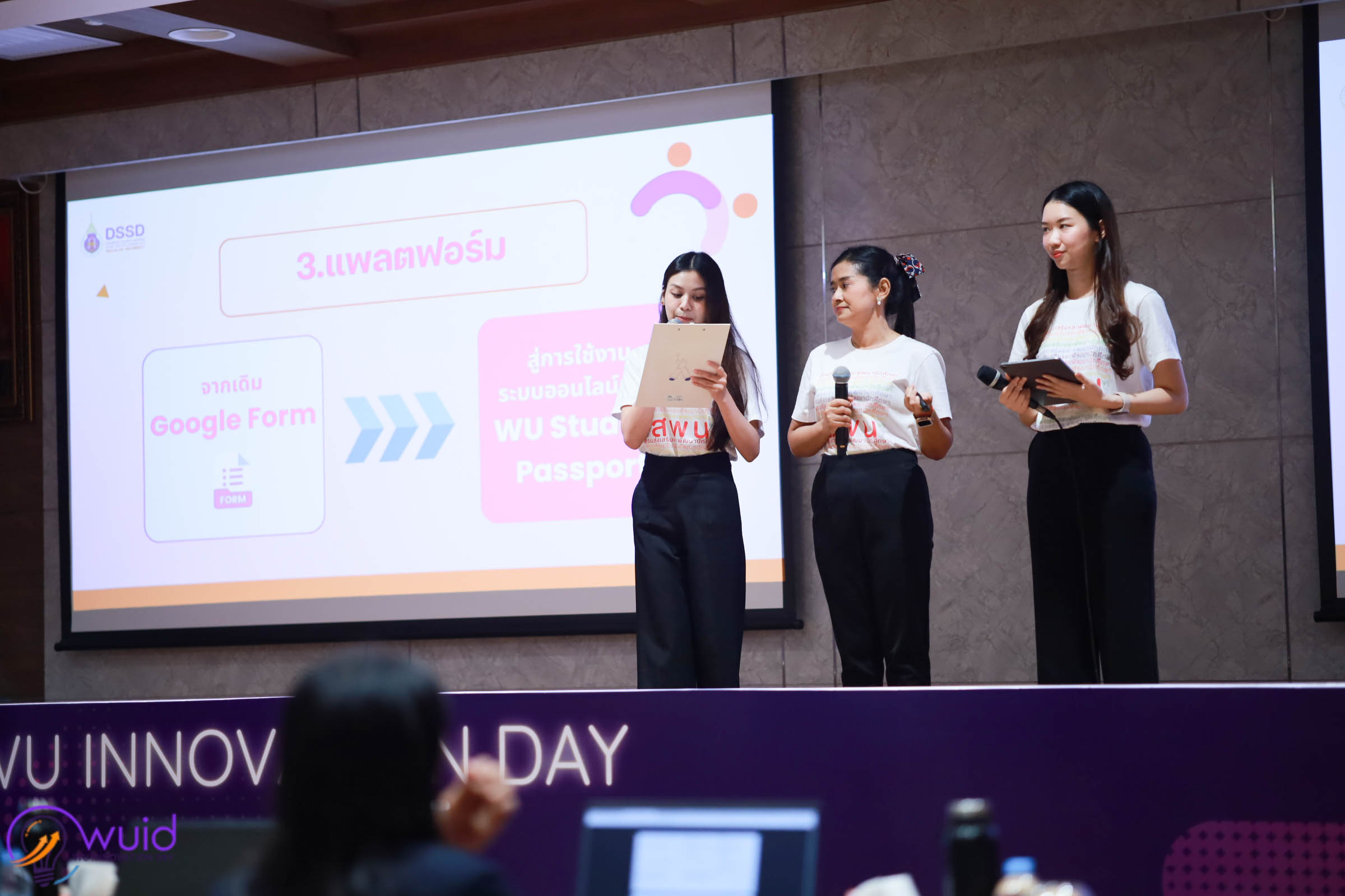 การจัดงาน WU Innovation Day จัดขึ้นต่อเนื่องเป็นปีที่ 3 มีวัตถุประสงค์เพื่อเป็นเวทีแสดงผลงานด้านนวัตกรรมและการพัฒนากระบวนการทำงานของหน่วยงานต่าง ๆ ภายในมหาวิทยาลัย ไม่ว่าจะเป็นสำนักวิชา วิทยาลัย บัณฑิตวิทยาลัย ศูนย์ สถาบัน ส่วน และสำนักงาน โดยผลงานที่นำเสนอเป็นผลสัมฤทธิ์จากการสร้างสรรค์และการพัฒนางานที่สามารถนำไปใช้ได้จริง สอดคล้องกับแนวคิด LEAN: ลดขั้นตอน ลดเวลา และประหยัดงบประมาณ ตามนโยบายของมหาวิทยาลัย