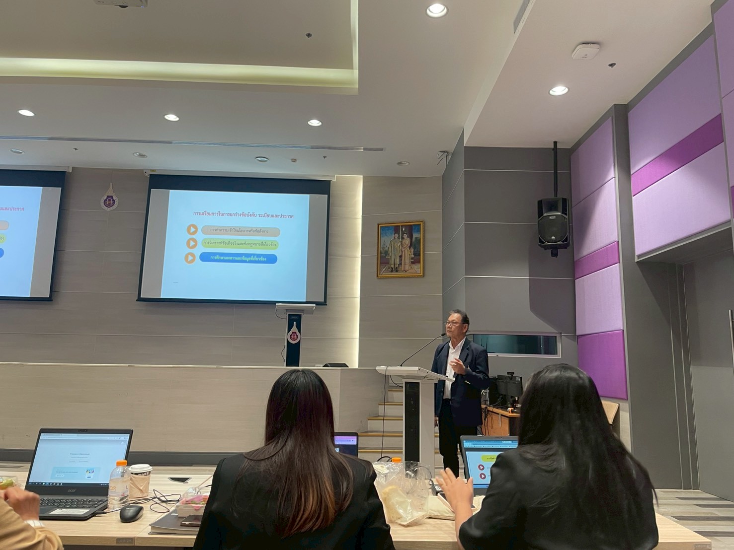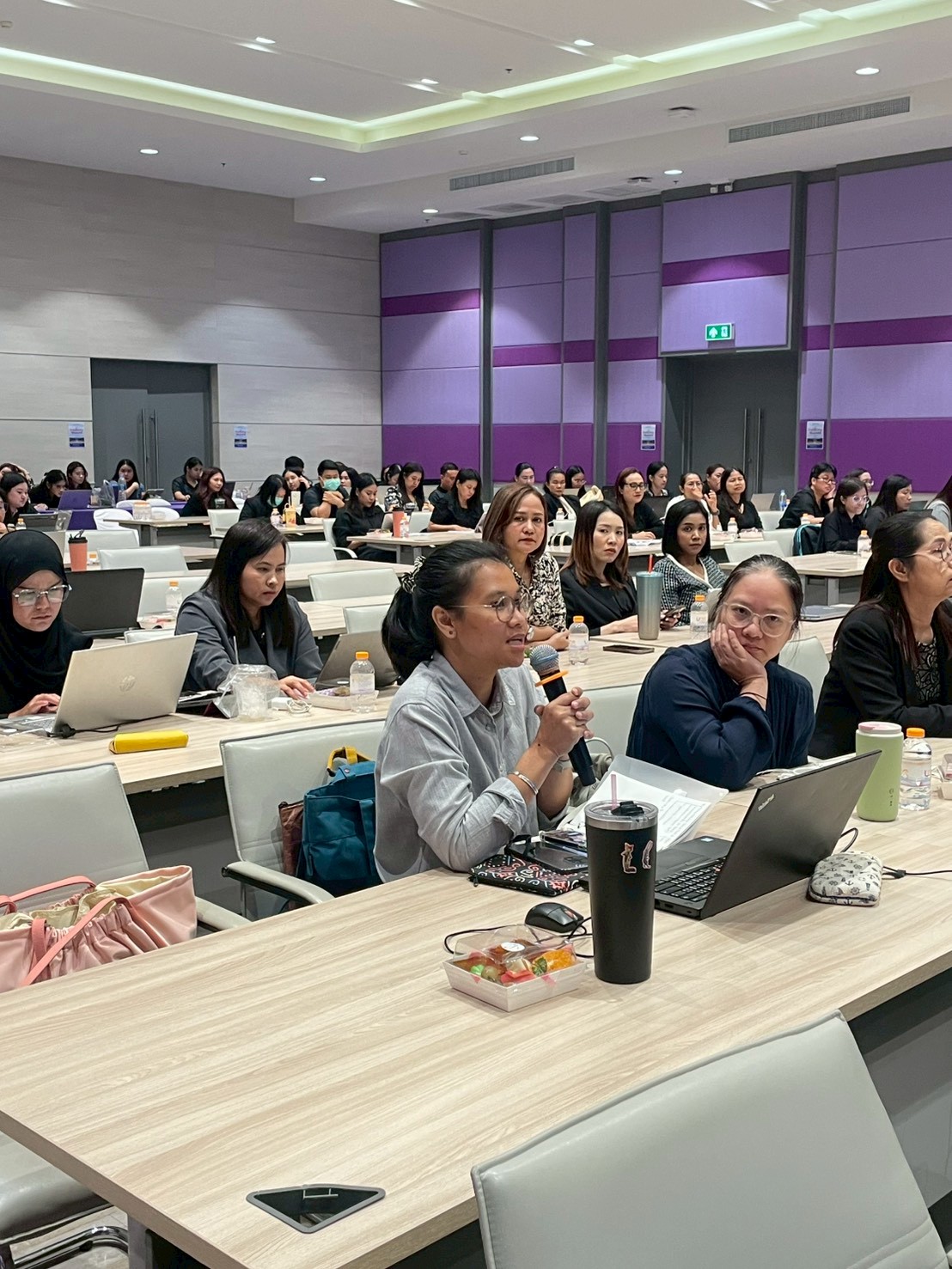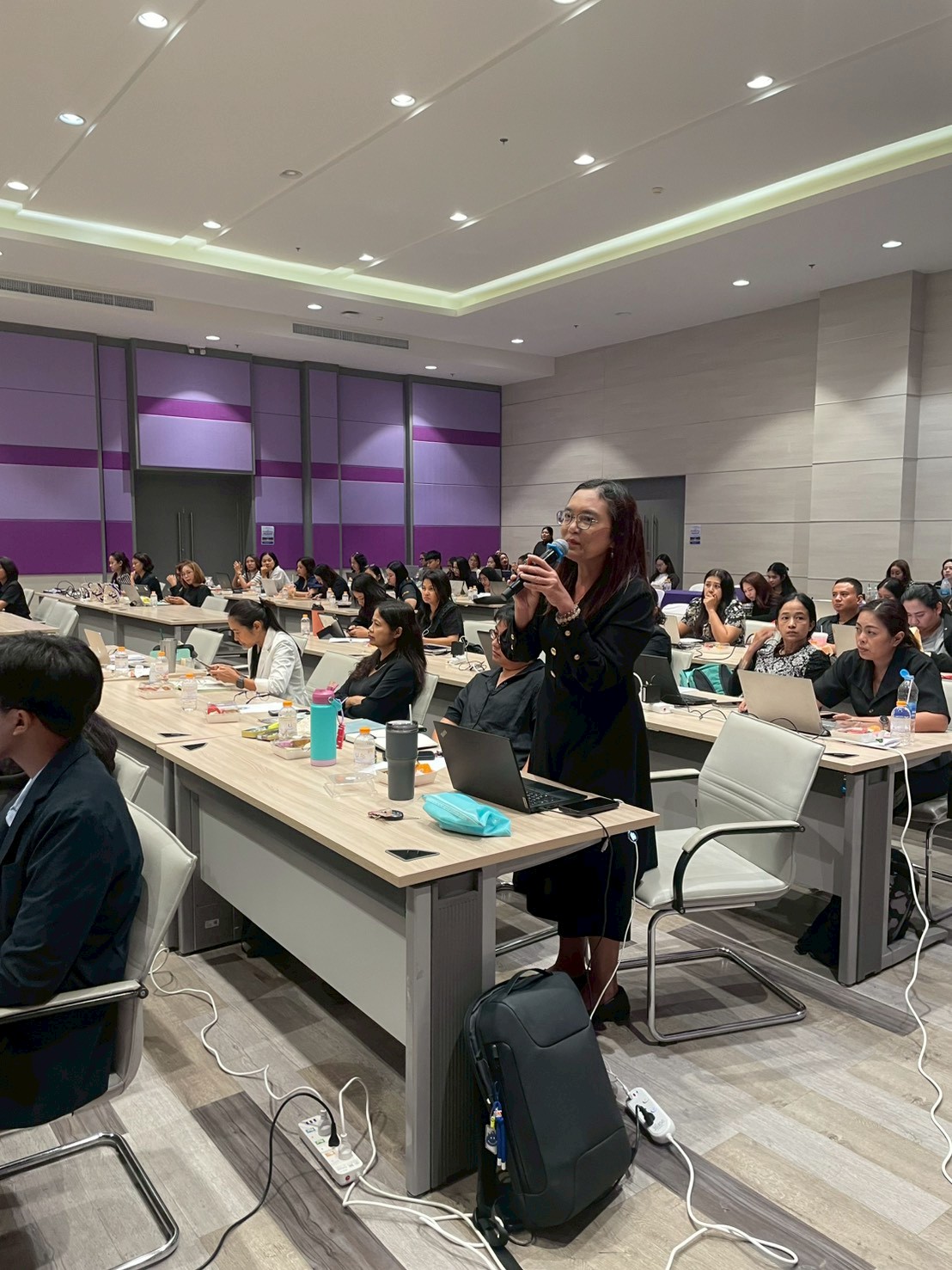 บรรยากาศการอบรมเป็นไปอย่างคึกคัก มีผู้สนใจเข้าร่วมอบรมถึง 104 ราย ซึ่งมากกว่าจำนวนที่คาดการณ์ไว้ สะท้อนถึงความตื่นตัวของบุคลากรต่อการพัฒนาศักยภาพด้านกฎ ระเบียบ และงานนิติการขององค์กร